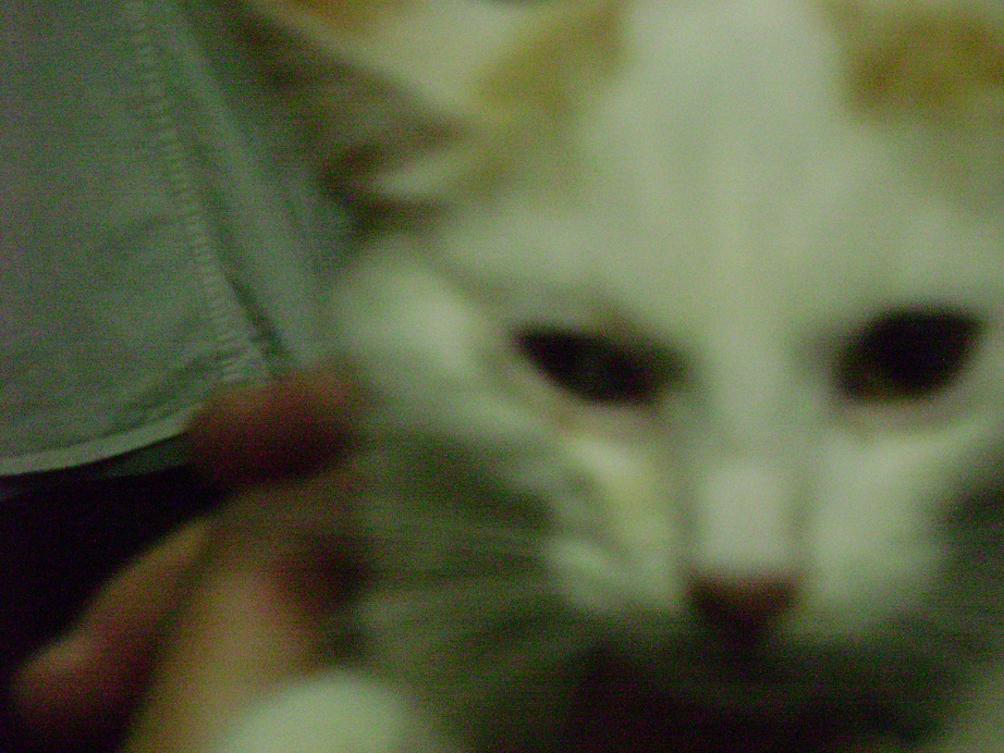 Кровь - это он искусал женщину, когда ловили. Котенок здоров (т-т-т, чтоб не сглазить), но совершенно дикий. В подвале несколько дней истошно кричал.