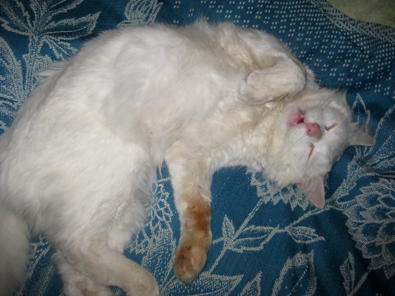 P.S. Решили поделиться видом спящего Каса :lol: Он так смешно спит...на спине...с открытым ртом...иногда язык высовывает...и причмокивает иногда)))))))))))))