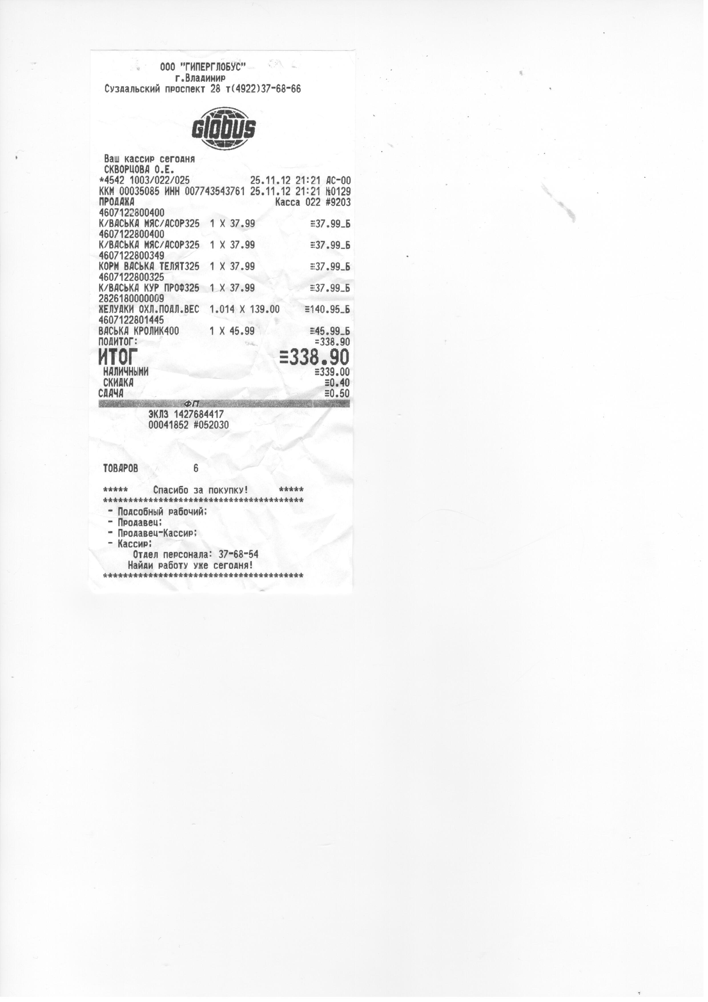 Корм - 338,90 руб.,