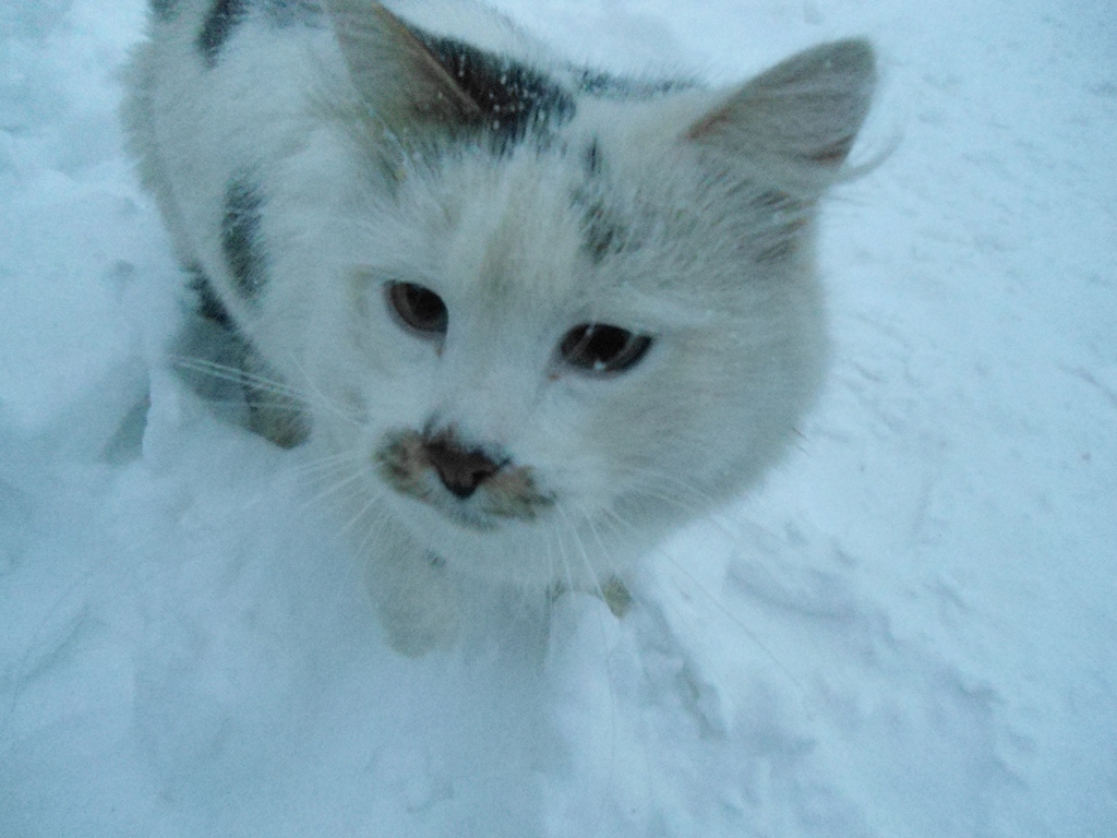 Он периодически убегает за людьми, потом опять возвращается, сегодня утром кормила его, он появился недавно пару недель назад...а черно-белый это кот, он живет где-то рядом с Сириусом или в доме за торговым центром (в котором я живу), по вечерам, когда приезжаю домой тоже подкармливаю его...