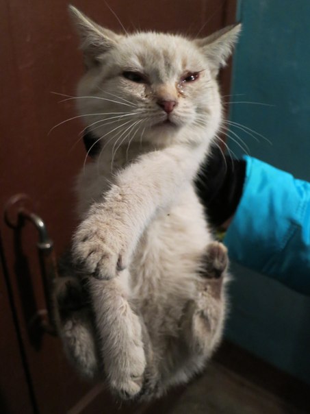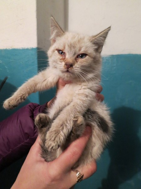 Бывшедомашняя тайка.Ее хозяйка тяжело заболела,и оказалась в больнице.А кошечка оказалась на улице..Возраст кошки 8 месяцев. "Временно живет в ларьке.Ночью терпит, не ходит в туалет, а ждет когда ей откроют на утро дверь. В ларьке она больше не может оставаться!!! На фото она получилась не очень, а так она красивая у нее небесно голубые глаза, а сама она пепельно-серая"