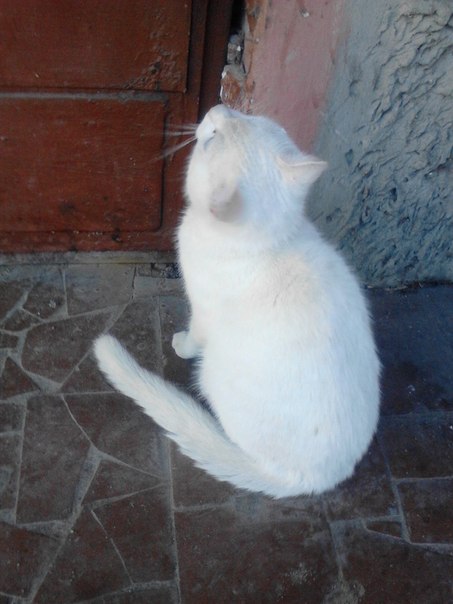 Около студенческой общаги на ул.Разина 17 пока еще сидит замечательный котик! Белый, пушистый, с чудесными глазками и очаровательным розовым носиком! Кот очень сильно дрожал от холода и мяукал, просился на руки, буквально запрыгивал на колени и не хотел долго слезать. Очень ласковый, мурчащий, дрожащий, я накормила его, конечно, но больше сделать ничего не могу, т.к. живу в общаге.