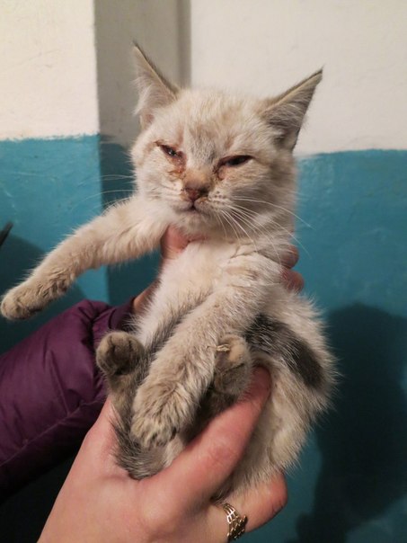 Бывшедомашняя тайка.Ее хозяйка тяжело заболела,и оказалась в больнице.А кошечка оказалась на улице..Возраст кошки 8 месяцев. "Временно живет в ларьке.Ночью терпит, не ходит в туалет, а ждет когда ей откроют на утро дверь. В ларьке она больше не может оставаться!!! На фото она получилась не очень, а так она красивая у нее небесно голубые глаза, а сама она пепельно-серая"