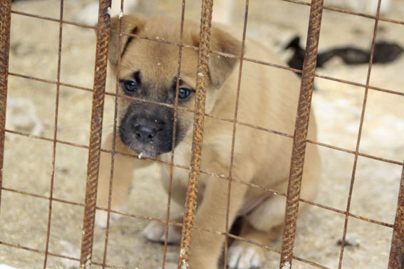 Сидит в кошачьем выгуле для кошек.