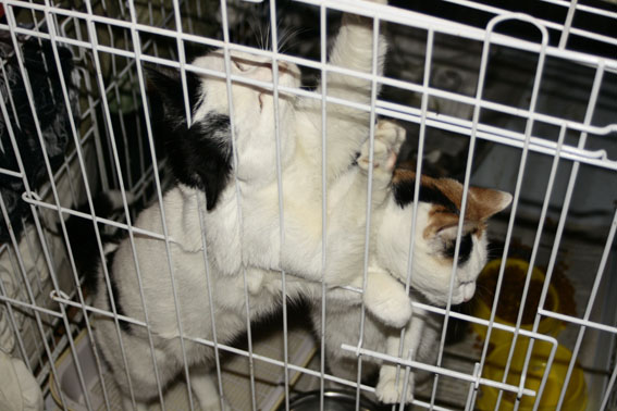 Еще и кошки-аккуратистки, всех лапами хватают проходящих : "Меня-меня забери". Сфотографировать нереально. Активные-вертлявые. Но о-о-очень замечательные. Не вписываются НИКАК в приютскую клетку.
