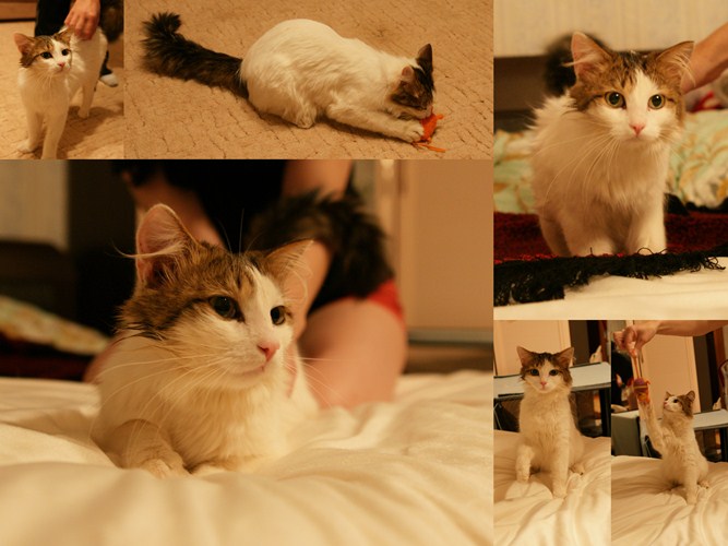 девушка, которая готова была взять на передержку беременную кошку, которая пропала, вязала этого котенка.