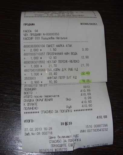 Фото котенка и чека за рыбу