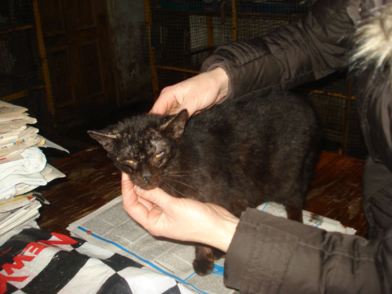 Черный кот с нотоэндрозом+проблемы зрения - видит только силуэты.