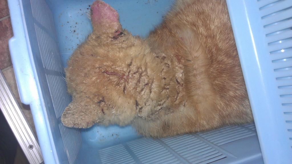 г.Владимир. SOS!!!СРОЧНО НУЖНА ПОМОЩЬ НА ЛЕЧЕНИЕ КОТУ!!! Рыжик,рыжий как огонь,сидел около машины в луже воды,даже уже не поджимал лапы от холода-сил уже не осталось.Рыжик полностью поражен чесоткой!!!На голове и шее,уже кровавые корки,трещины до мяса,лапы тоже уже поражены и тоже в кровь.ОЧЕНЬ НУЖНЫ ФИНАНСЫ НА ОПЛАТУ ЛЕЧЕНИЯ. В данный момент кот на платном стационаре. Ему также нужно качественное питание.