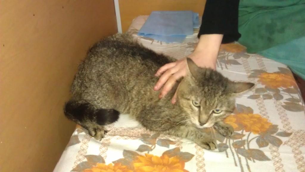 Сегодня была в Атланте Бурзик выздоравливает, кот очень большой, если его откормить, думаю кг на 8 будет, хорошо бы его в частный дом мышей ловить, очень ласковый, прошу помочь с пиаром с сетях и тп
