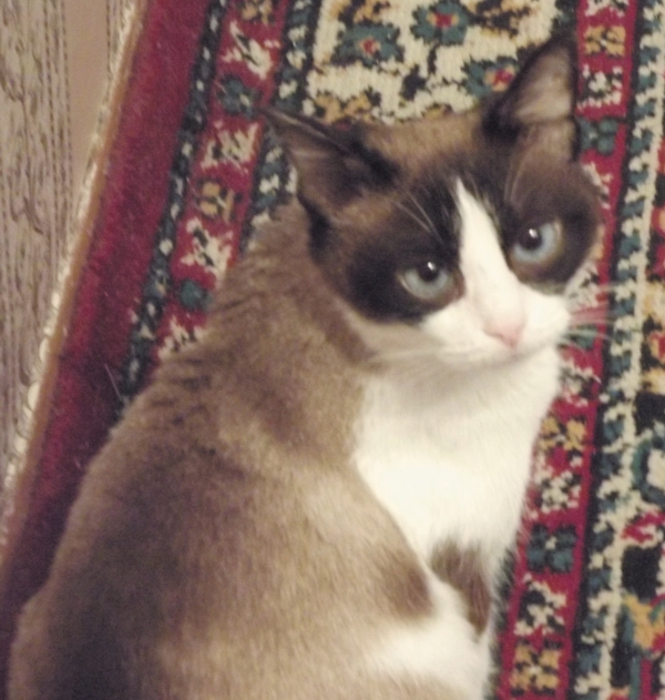 Да, назвали мы ее Фифа, потому что эта такая хитрющая мадама - с кем хочет разговаривает, а не хочет - даже ухом не шевельнет. Прекрасно знает свою лежанку, но иногда демонстративно укладывается на мужнин стул на кухне - и гордо смотрит на него своими голубыми глазищами - ну, попробуй сгони.