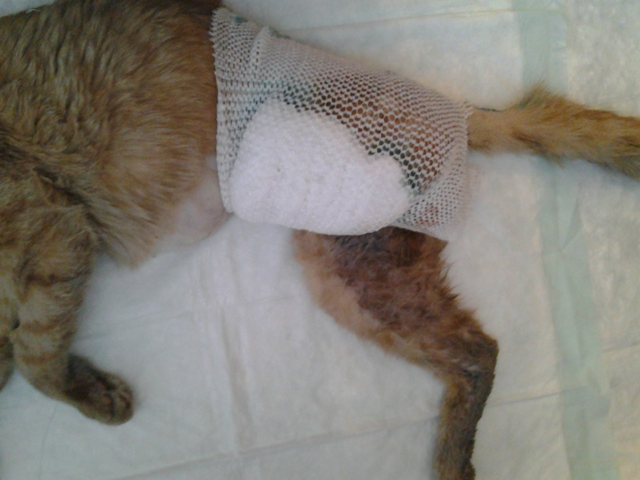 Нашему подопечному котику Рыжику требуется очередная плановая операция.У него частично развалились швы,но самочувствие кота хорошее.У него хороший аппетит,он активный и даже просит кошку))Сейчас проводится очистка раневой поверхности от мертвых тканей,после чего (примерно через неделю) будет сделана операция-пластика раны,удаление хвоста и кастрация.На данный момент на лечение Рыжика потрачено больше 12000 руб,а ведь у нас есть и другие тяжелобольные подопечные.Помогите денежкой Рыжику!