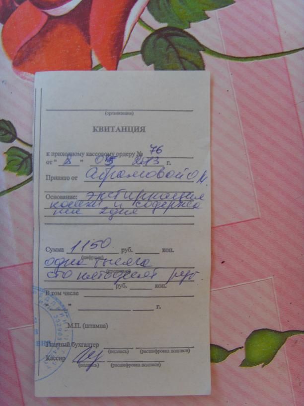 Кошку простерилизовали, чувствует себя хорошо, бодренькая, забираю её завтра. Выкладываю чек за стерилизацию+два дня стационара. Света(surok) передала 500р., большое спасибо. Очень прошу помочь с оставшимися,т.к. деньги отдала чужие, надо возвращать. Попробую кинуть по ней объявления, может кому понравиться.