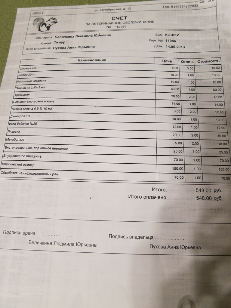 Никитина Ольга писал(а):Т.к. мы финансово теперь не зависим от фонда и собираем на лечение Тимура на отдельный ЯК,всю отчетность по коту можно также смотреть в его теме в контакте.Теперь все финансирование его лечения будет идти только с отдельного ЯК,расход соответственно будет отражаться и здесь и в контакте.В контакте выложила чек за 14 мая,это первый отчетный чек для нового як.кто может-перенесите сюда его пож.В теме в конткте также отражено,что теперь фонд не финансирует лечение Тимура,и что все вопросы по фин отчету ко мне и к Даше Селиховой.Операция у Тимура завтра в 13-00.