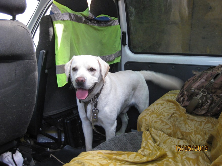 В воскресенье(12.05) на улице Куйбышева был найден лабрадор, кобель, возраст- примерно около года. В приютах мест нет. Поэтому пока ночует у Игоря Петровича из службы отлова в гараже, днём с ним в машине ездит.