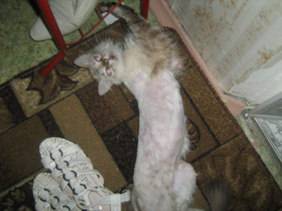 По состоянию её: Муська пошла на поправку, аппетит отличный, набирает вес, уже начинает отрастать новая, очень мягкая шерсть, с лотком проблем нет (что меня приятно удивило) - ни одного промаха! Проблем со здоровьем больше нет, проглистогонена. В будущем помогу со стерилизацией.