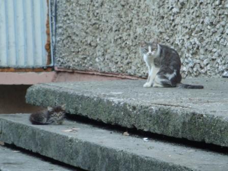 Сегодня планируется отлов одного котёнка (предположительно передержка), я так думаю нам повезёт именно с "черной полоской", другие очень пугливы. Он как Матроскин из мультика.