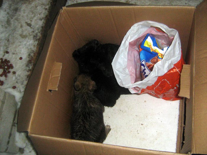 Вот так это бывает... В конце дня, когда работники уходят домой.., вдруг у крыльца появляется коробка, с первого взгляда казалось с кормом, но, оказывается, ещё и с другими подарками...