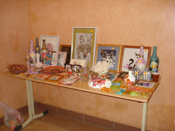 Сегодня один стол для раскладки изделий забыли не привезли и спасибо хозяевам Дома офицеров, что предоставили нам стол из студии детской - большой и удобный.