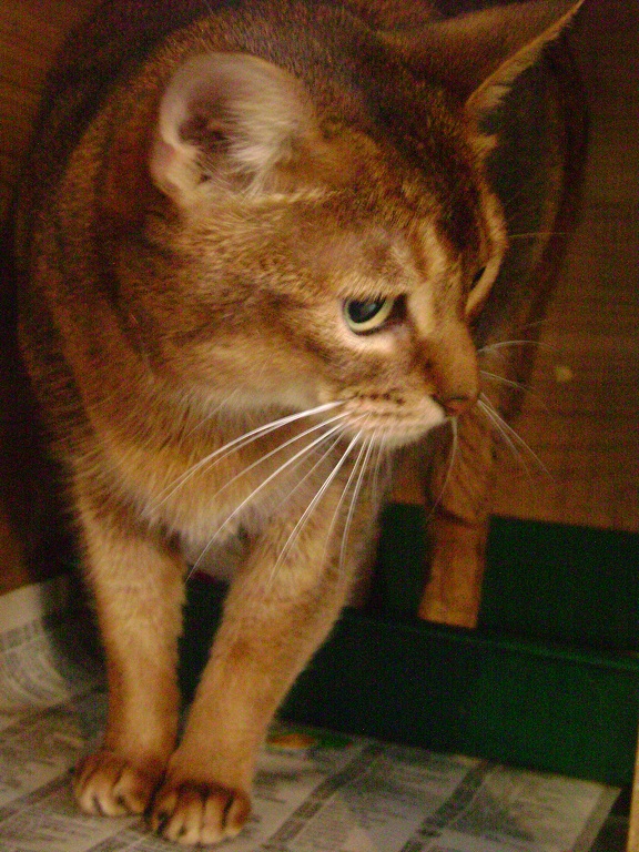 Сегодня в приют сдали абиссинскую кошку. Возраст 2- 2,5 года, стерилизованнная. Сдал сам хозяин, а вот по какой причине мне так-никто в приюте и не сказал. Кошка сидит в хирургии. Девочка агрессивная, так что в семью с детьми не подойдет.