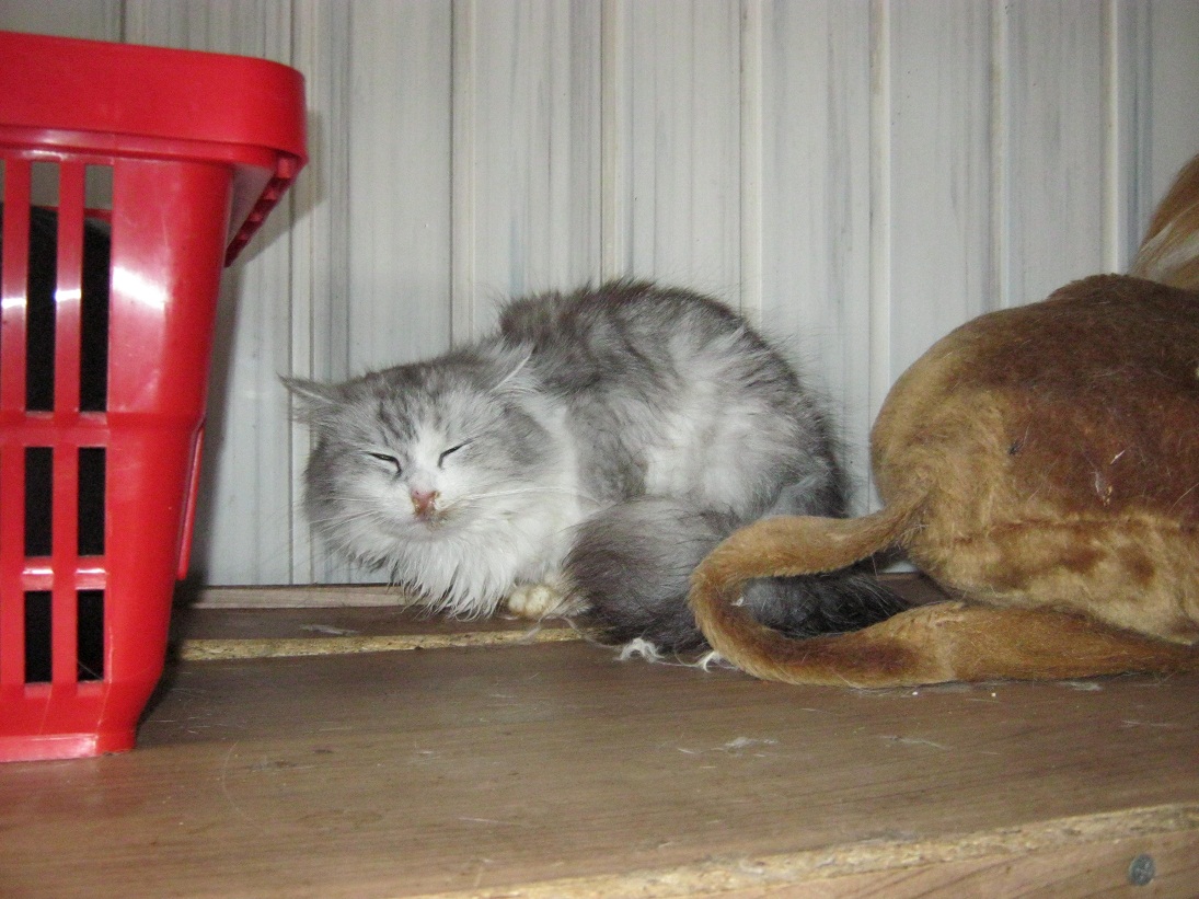 Елена а ты не знаешь где киска, которая после аварии7 зашуганная такая была. окрас - белая с серым (зеленым) лежала вся в зеленке в средней правой клетке в терапии?