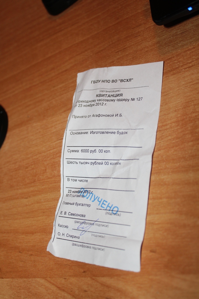 19.10.2012 "...весь материал закупила, отвезла в лицей №15, приняли по описи, составили договор на оказание услуг. Денег не хватило срочно нужны 2500 руб., для оплаты работ по строительству будок и транспортировке в приют. ПОМОГИТЕ МНЕ НЕ ВЫТЯНУТЬ ОДНОЙ((((( Всего делаем пока 3 будки на 2 собак, утепленные. Цена работ за 1 будку 2000 руб., + 380 руб. за грузовое такси. Пообещали сделать меньше чем за месяц!!!